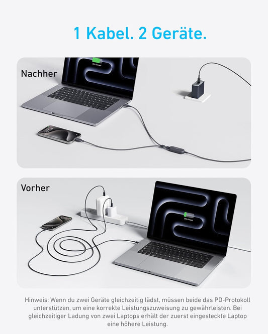 Anker 2-in-1 USB-C auf USB-C Kabel (120cm, 140W, Flecht-Design)