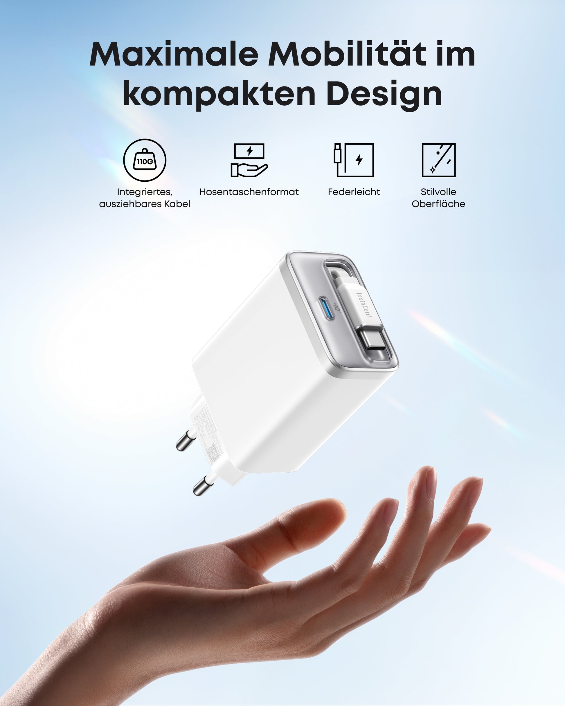 Anker Nano Ladegerät (35W, Integriertes einziehbares USB-C Kabel)