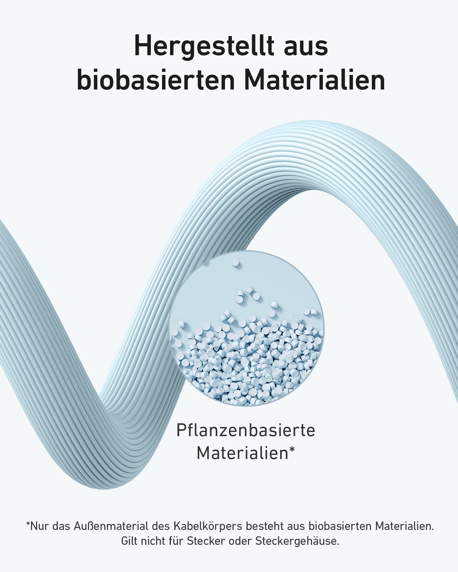UMWELTFREUNDLICHES DESIGN: Das Äußere des Kabelkörpers besteht größtenteils aus Biomaterialien und Pflanzen wie Mais und Zuckerrohr.