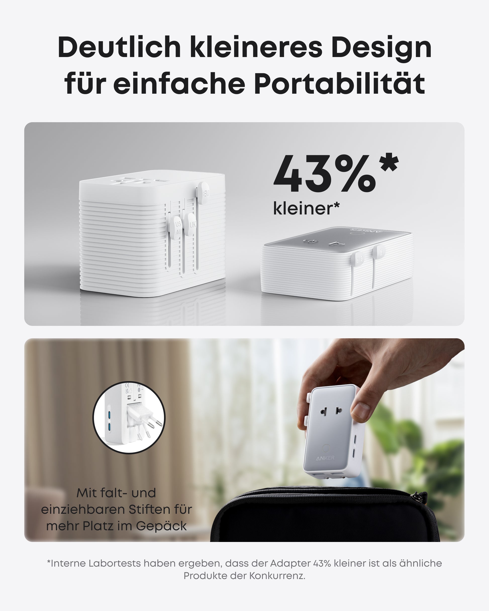 - Besonders kompakt: Das Design ist um 43% kleiner als andere, vergleichbare Modelle und lässt somit mehr Platz im Gepäck. Die faltbaren und einziehbaren Stifte bieten zusätzliche Praktikabilität.
