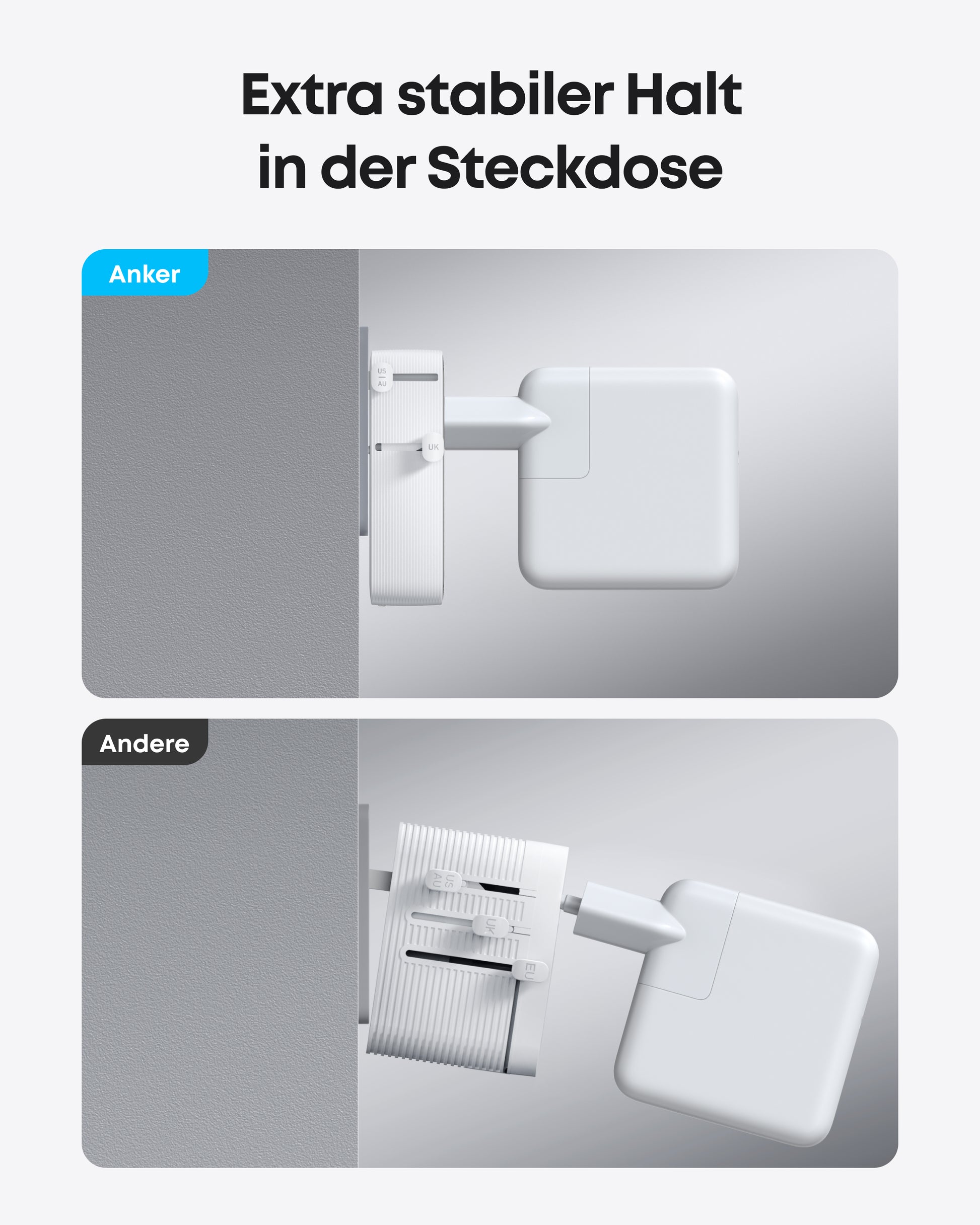 - Lieferumfang: Anker Nano Reiseadapter (5-in-1, 20W), Kurzanleitung, 24-monatige Garantie und unser freundlicher Kundenservice.